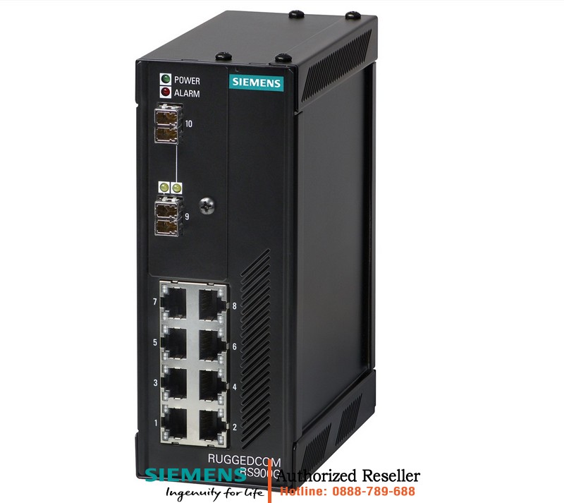 Đại lý chính hãng SIEMENS Bộ Chuyển Mạng Công Nghiệp RUGGEDCOM RS900G 6GK6090-0GS21-0BA0-Z – Switch Ethernet Quản Lý, 2 Cổng Gigabit Fiber, 8 Cổng Fast Ethernet, Mã Hóa 128-bit The RUGGEDCOM RS900G is an industrially hardened, fully managed Ethernet switch providing dual fiber optical Gigabit Ethernet ports and 8 Fast Ethernet copper ports; 128-bit Encryption; 2 Fiber Optical Gigabit Ethernet Ports (1000BaseX); 8 Fast Ethernet Ports (10/100BaseTX); Multiple fiber connector types (LC, SC, SFP Pluggable Optics); Bi-directional singlestrand fiber support; Long haul optics allow Gigabit distances up to 70km; 24 = 24 VDC (10-36 VDC) 0 = No power supply 2 D = DIN Rail Mounting xx = none XX = Manufacturing modification: none 2LCMM = Dual 1000SX Multimode LC 850nm 500m