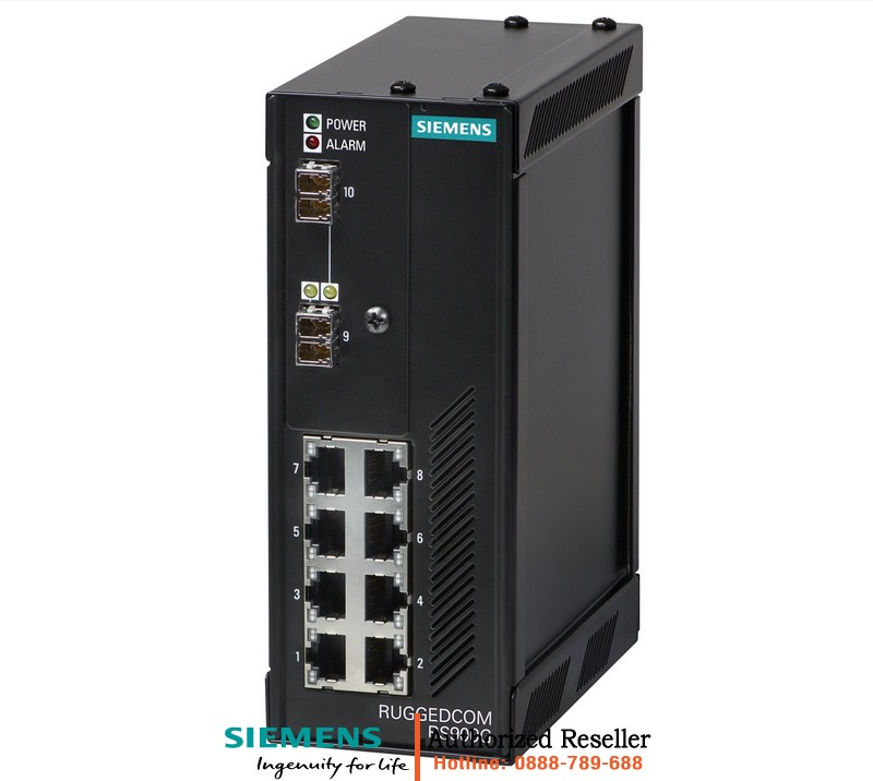 Đại lý chính hãng SIEMENS Bộ Chuyển Mạch Công Nghiệp RUGGEDCOM RS900G 6GK6090-0GS21-0BA1-Z – 2 Cổng Gigabit Quang, 8 Cổng Ethernet Đồng, Mã Hóa 128-bit, Lắp DIN Rail The RUGGEDCOM RS900G is an industrially hardened, fully managed Ethernet switch providing dual fiber optical Gigabit Ethernet ports and 8 Fast Ethernet copper ports; 128-bit Encryption; 2 Fiber Optical Gigabit Ethernet Ports (1000BaseX); 8 Fast Ethernet Ports (10/100BaseTX); Multiple fiber connector types (LC, SC, SFP Pluggable Optics); Bi-directional singlestrand fiber support; Long haul optics allow Gigabit distances up to 70km; 24 = 24 VDC (10-36 VDC) 0 = No power supply 2 D = DIN Rail Mounting xx = none C01 = Manufacturing modification: Conformal Coating 2LC10 = Dual 1000LX Singlemode LC 1310nm 10km