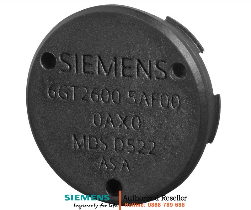 Đại lý chính hãng SIEMENS Transponder MDS D522 6GT2600-5AF00-0AX0 – Chuẩn ISO 15693, chip Fujitsu, bộ nhớ 8192-byte, tương thích RF200/RF300 Gen2 transponder MDS D522 special variant only for RF200 RF300 Gen2, for snapping into metal, ISO 15693, chip type FUJITSU MB89R112, 8192-byte FRAM user memory 18x 5.2 mm (DxH); minimum order quantity 10 units.