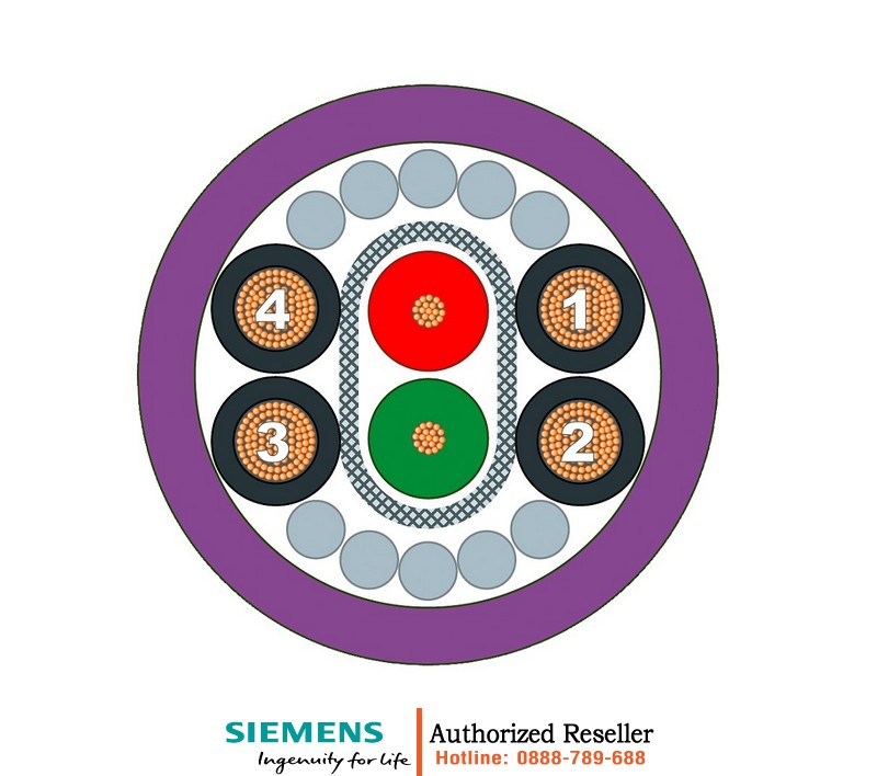Đại lý chính hãng SIEMENS Dây Cáp PROFIBUS ECOFAST Hybrid 6XV1830-7BH50 – Lắp Sẵn Đầu Nối, Chịu Kéo, Dài 5m PROFIBUS ECOFAST Hybrid Cable, 2xCu 0.64 mm, 4x Cu 1.5 mm2, Cable pre-assembled with ECOFAST plug and socket, trailable, length 5 m.