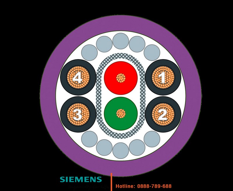 Đại lý chính hãng SIEMENS Cáp PROFIBUS ECOFAST Hybrid 6XV1860-2P – 4×1.5mm² + 2×0.64mm² Chống Nhiễu – Bán Theo Mét PROFIBUS ECOFAST Hybrid Cable GP, trailable cable with 4x Cu (1.5 mm2) and 2xCU (0.64 mm) shielded, sold by the meter, delivery unit max. 1000 m minimum order quantity: 20 m.